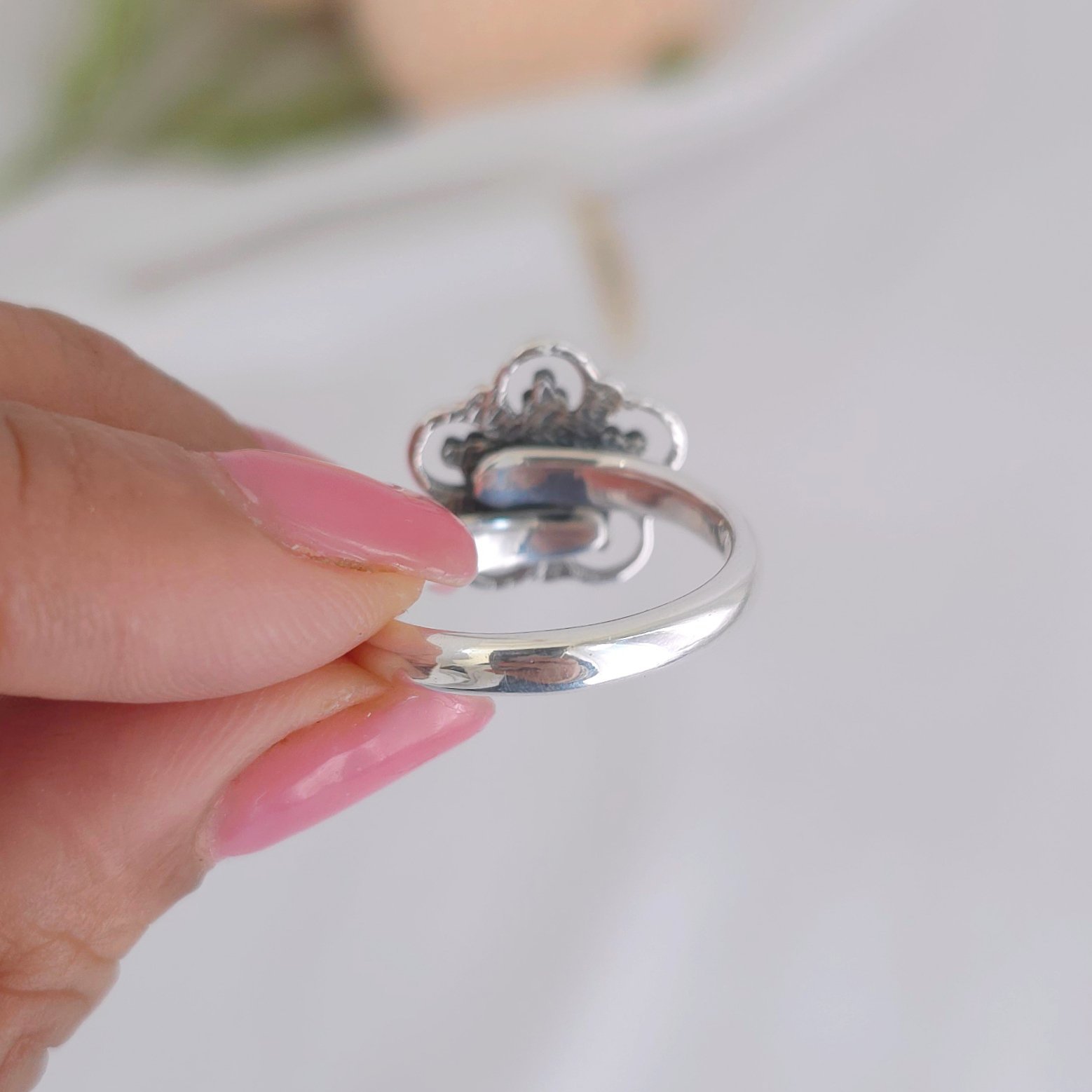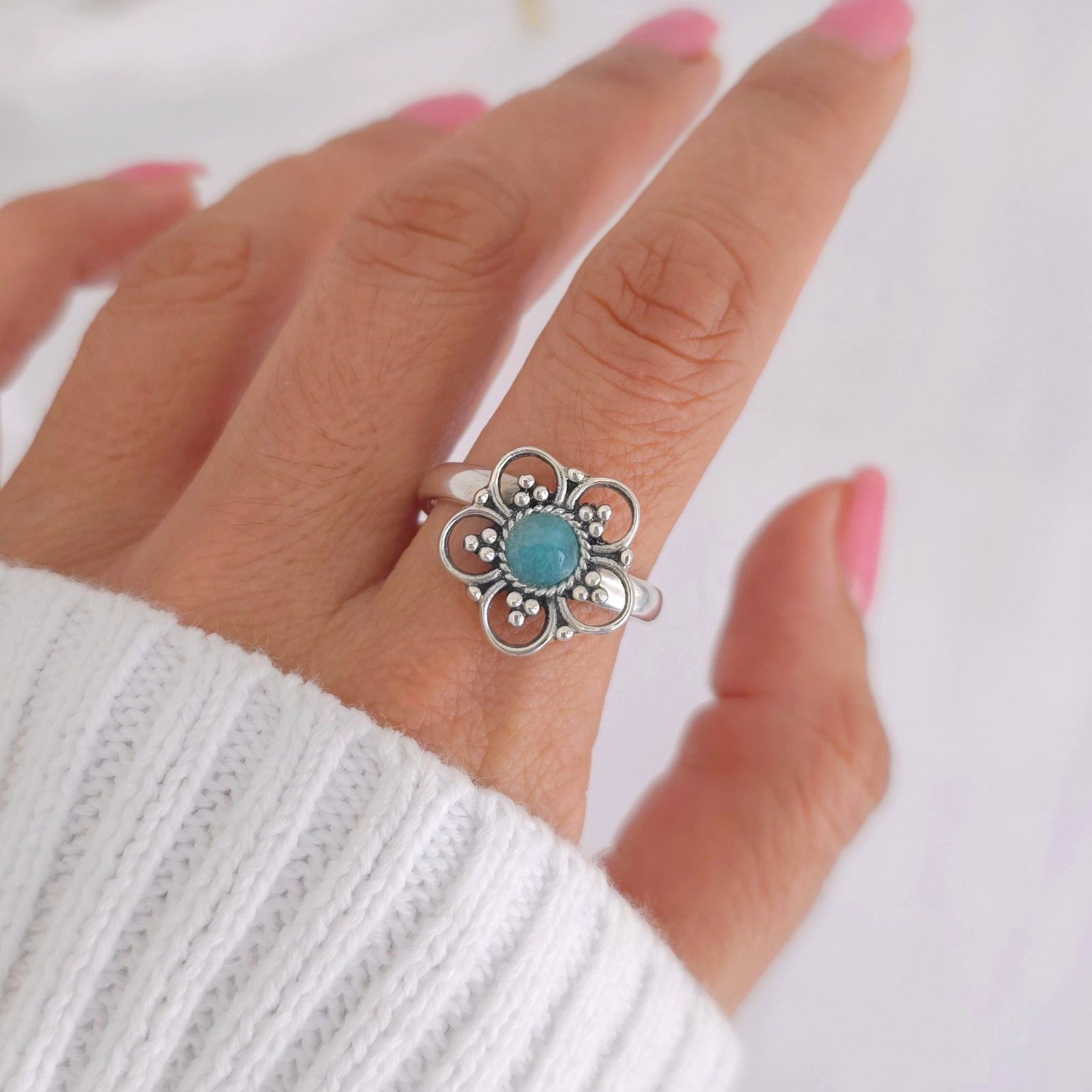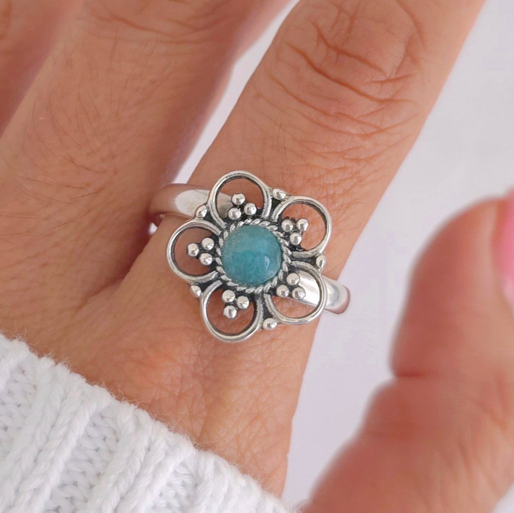 Anillo de florecita con amazonita