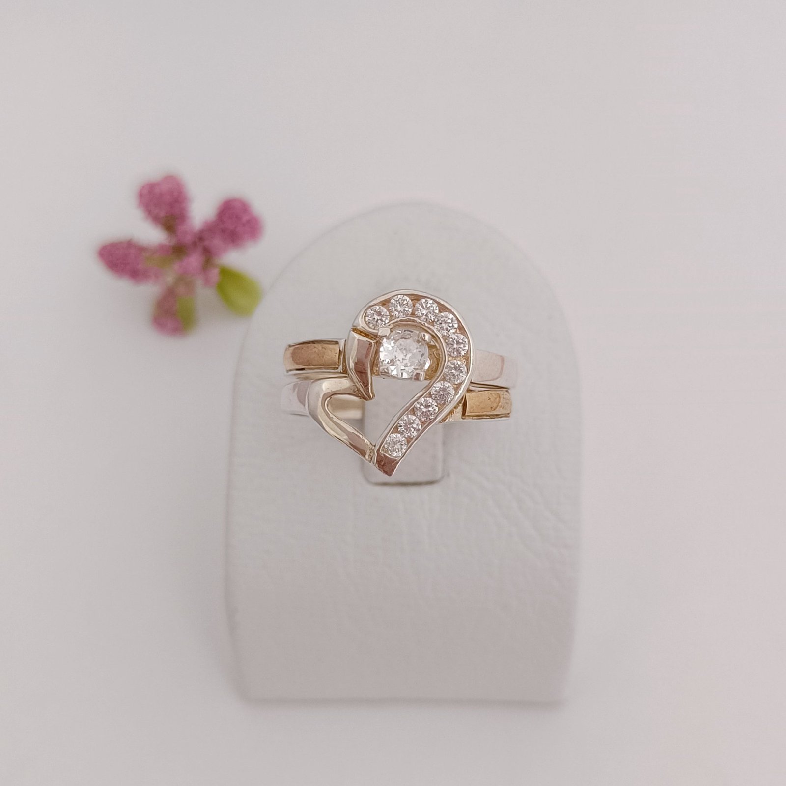 Anillo dúo corazón de plata con oro