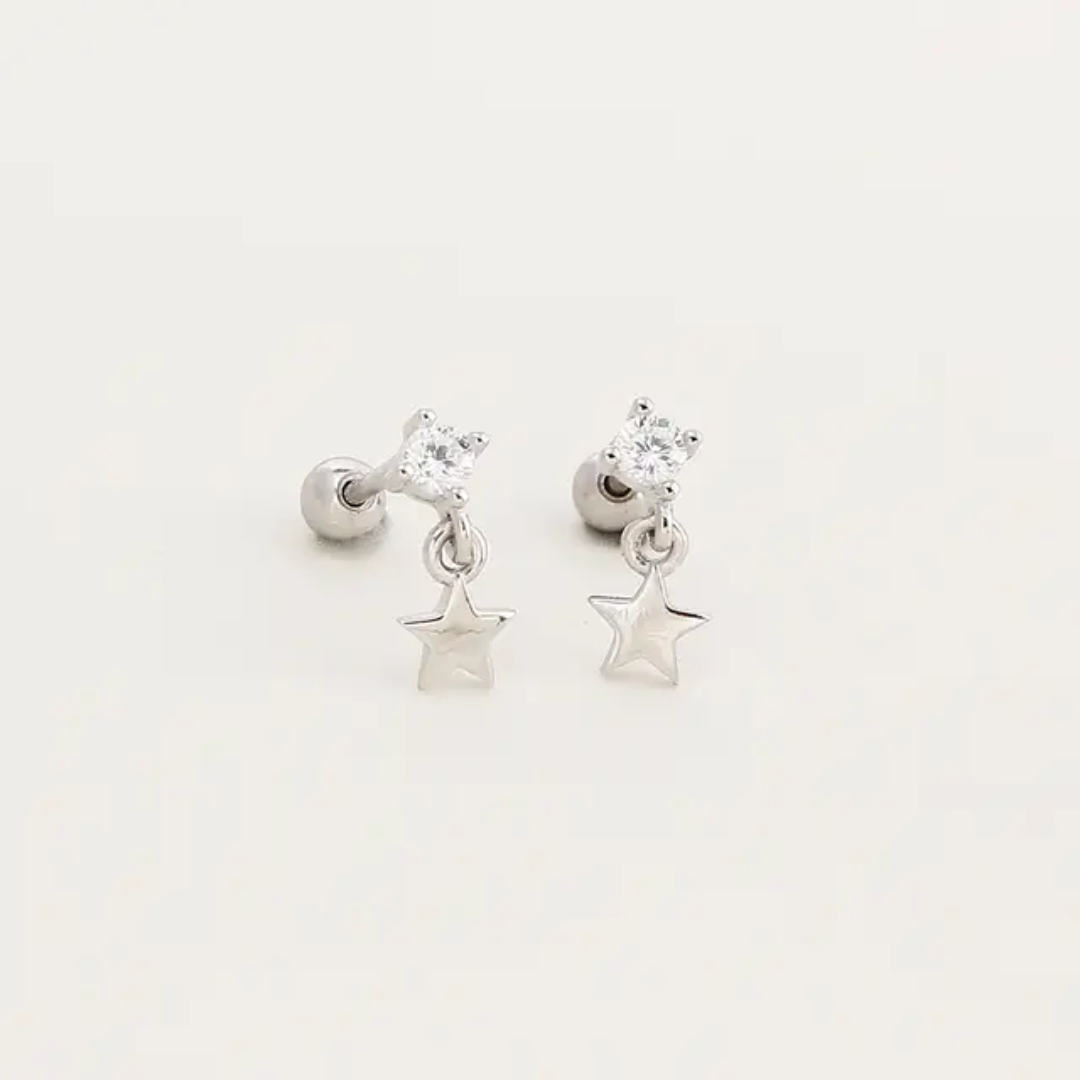 Aretes de estrella colgante plata