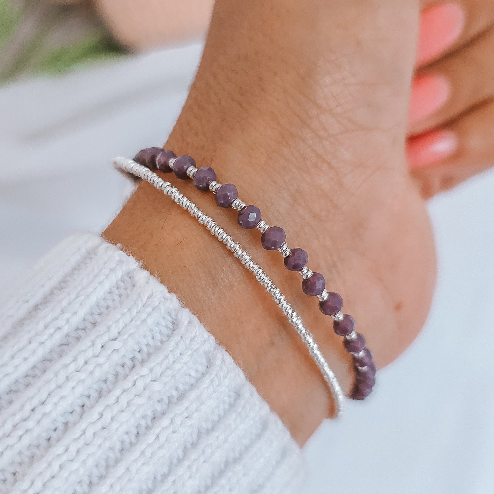 Pulsera doble morada cantidad